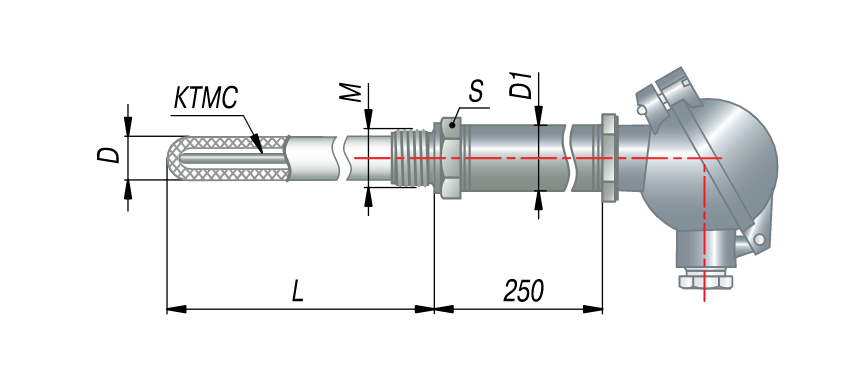 Перетворювачі термоелектричні на основі КТМС в захисній арматурі модель 125 125 D = 20 мм ДТПL